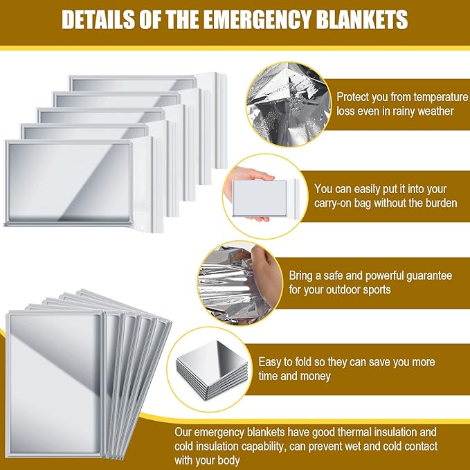 - Sufficient quantity: you will receive 50 pieces of silver survival blankets in the same size, they can help retaining up most of your body heat and prevent one from suffering hypothermia, you can just share with your friends when you're sleeping outside