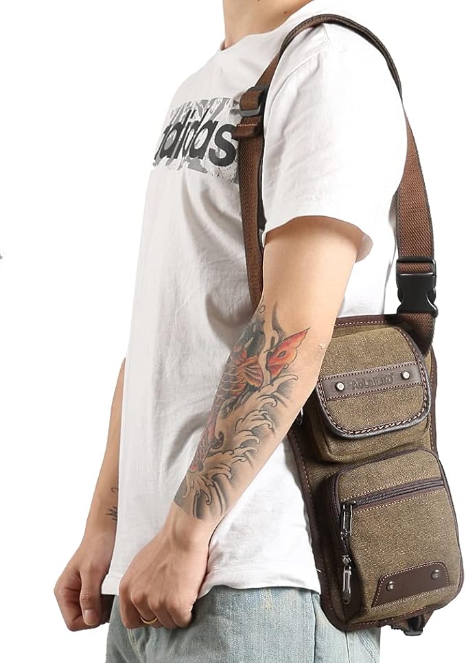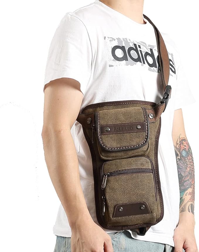 - Multipurpose use: This canvas leg bag can used as a drop leg bag, thigh pack, waist pack, crossbody bag, shoulder bag, messenger bag, fit very well for adult men or women, adults,college students, etc, perfect gift for Christmas, New Year, Thanks Giving Day, Groomsmen, Birthdays, Father's Day.