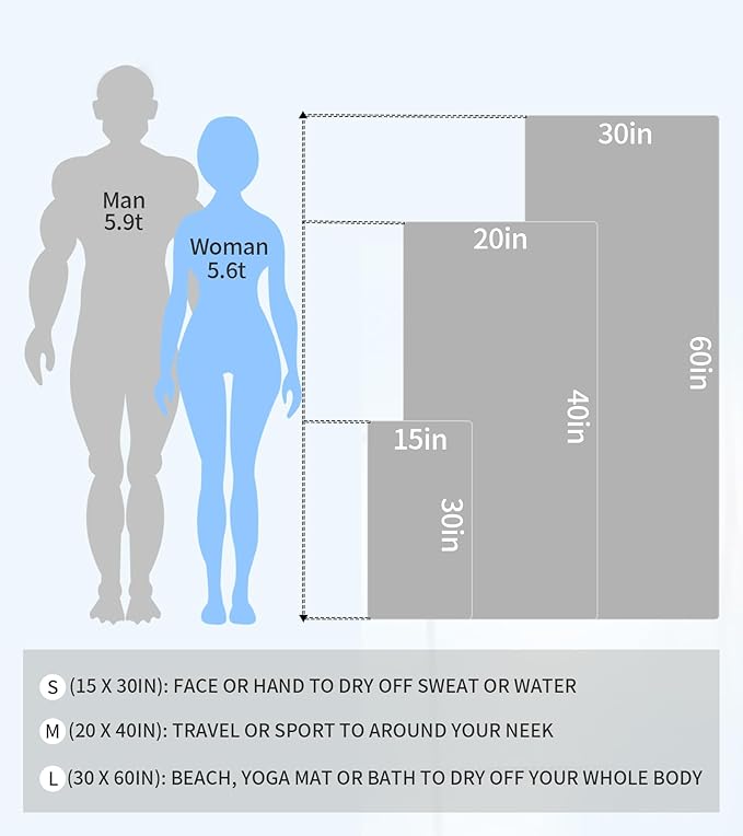 - 【VARIOUS SIZES】S:15 x 30in M:20 x 40in L:30 x 60in Whether you need pack light camping towel, gym towelsl,travel towel, swim towel, a small pack towel, or a large beach towel, we've got your covered.