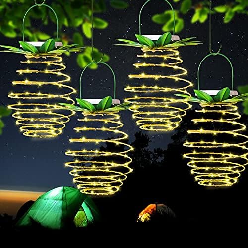 Tcamp 4 Pack 60 LED Solar Powered Pineapple Lights Outdoor Garden Patio Lights Decor, Outdoor Pineapple Lanterns Hanging Lights, Landscape Path Tree Lights (Dusk to Dawn Sensor/Warm White)