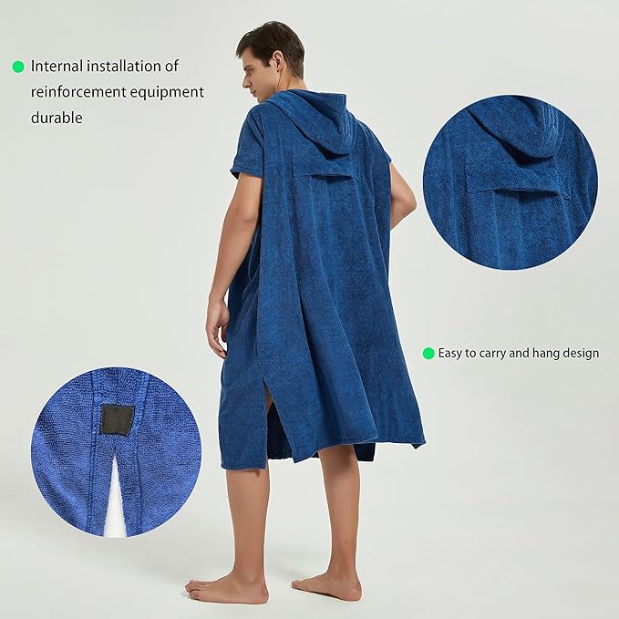III HHONS Beach Towel Hoodie Poncho Robe Towels Navy Hooded Swim Cover Surf Accessories Surf Clothes for Men/Women