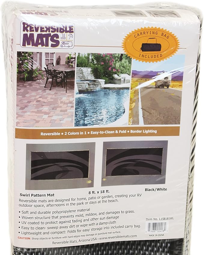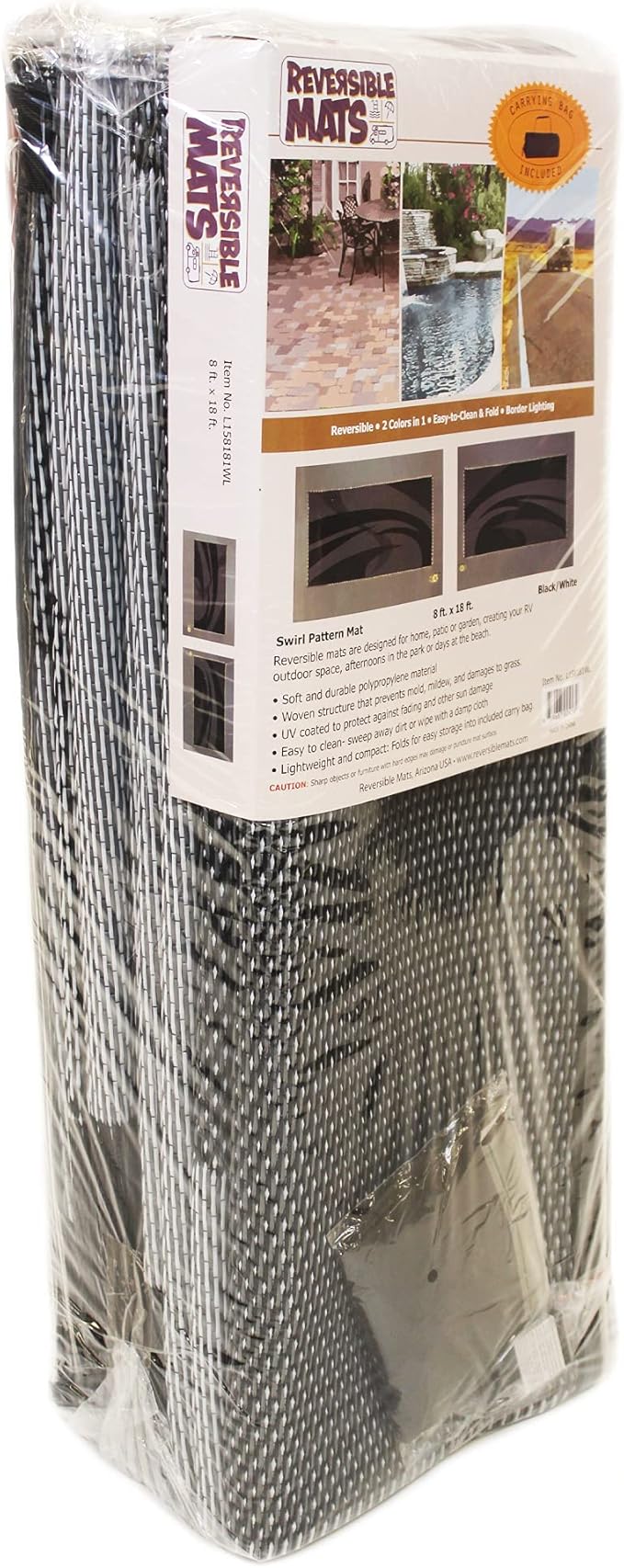 Stylish Camping L158181WL 8-feet by 18-feet LED Illuminated Patio Mat - Outdoor Patio Black/White RV Camping Mat