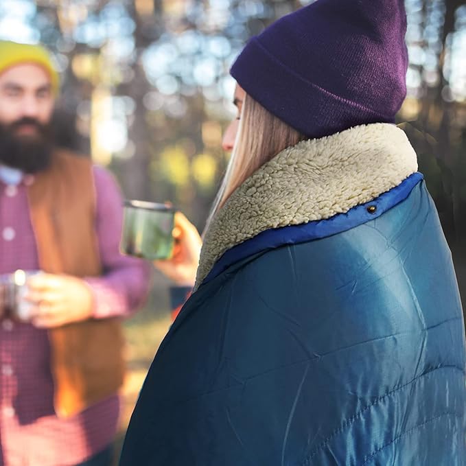Outdoor Camping Blanket - Puffy Ultralight Packable Blankets for Sleeping, Camp, Travel, Hiking, Stadium, Sherpa Fleece Warm Puffer Portable Camping Quilt, DWR,Machine Washable,56"x 78"