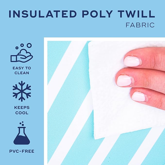 - Keeps Contents Cool And Cleans Up Easy: The three-layer insulated fabric features a water-resistant exterior, foam-insulated middle, and a heat-sealed, food-safe (PVC-free) liner that won't leak. Add ice and go! Spills wipe clean inside and out
