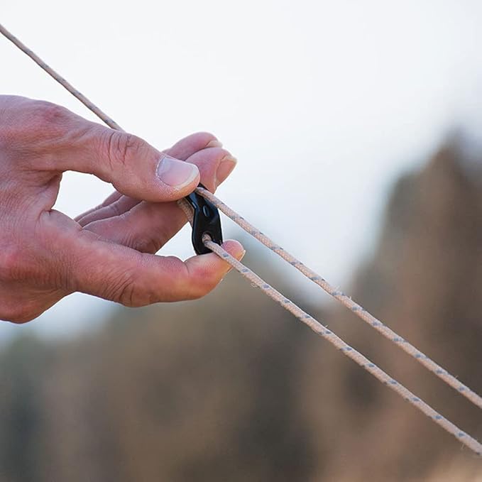 lasenersm 24 Pieces Cord Adjuster Tent Tensioners Guyline Cord Adjuster Rope Adjuster Aluminum Alloy Wind Rope Buckle 2 Hole Rope Guyline Adjuster for Tent Camping Hiking, Black