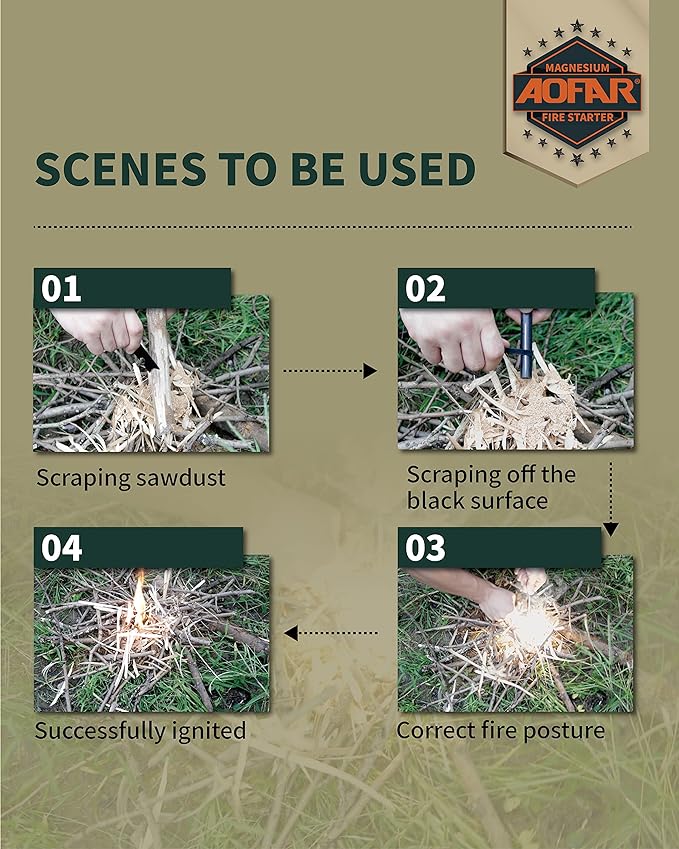 - Applicable Scenes—Fire starter can be ignited under any conditions (even if it is wet). It is suitable for camping, hiking, hunting, backpacking, outdoor survival
