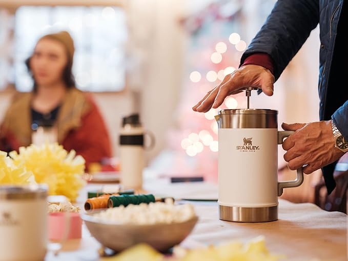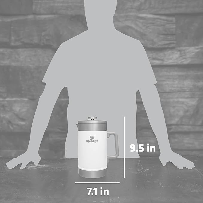Stanley Classic Stay-Hot French Press Coffee Maker 48 oz | 5 Minute Brew, 4 Hours Hot | Mesh Filter for Coffee Grounds | Insulated Stainless Steel French Press | BPA-Free | Polar
