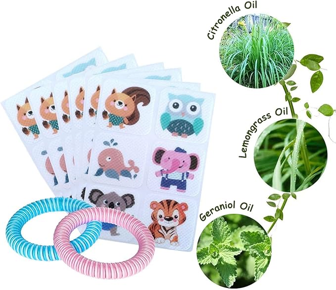 - Natural Plant Based Ingredients: Our mosquito patches for kids are made with natural Ingredients such as: Geraniol Oil, Lemongrass Oil and Citronella Oil. Natural plant essential oils can effectively repel mosquitoes