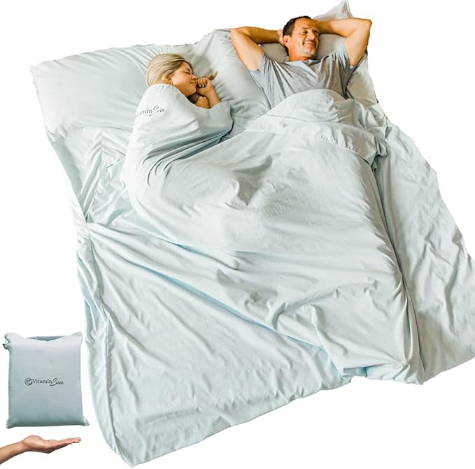 - 𝐋𝐨𝐧𝐠-𝐥𝐚𝐬𝐭𝐢𝐧𝐠 𝐃𝐞𝐬𝐢𝐠𝐧 - Ever had to endure sleeping on a questionable bed while traveling? The sleep sack for adults are the perfect way to stay safe and clean in RVs as RV bedding, in vacation rentals on a queen size travel bed, inside a 2 person sleeping bag liner while camping & more! This double sleeping bag liner is a queen size which can fit 2 adults, has double openings, is super lightweight, & easy to clean in the wash.