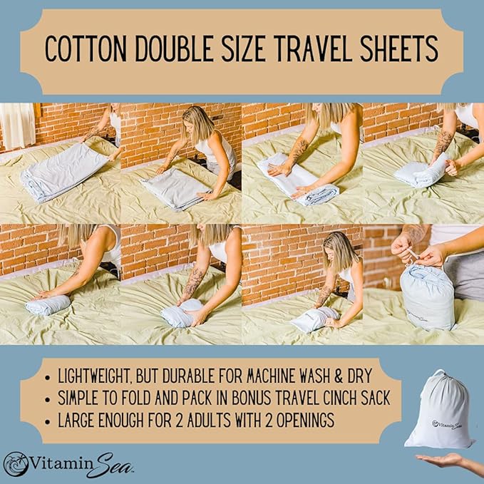 - 𝐄𝐚𝐬𝐲 𝐏𝐚𝐜𝐤 𝐒𝐥𝐞𝐞𝐩𝐢𝐧𝐠 𝐆𝐞𝐚𝐫 - 100% Machine Washable + Lightweight, Portable & Packable. This lightweight sleeping bag liner is designed to be packable, so the camping sleeping bag liner goes where you go! Queen Size Compact Sleeping Bag Liner is foldable & easy to pack in it's bonus cinchable two person sleeping bag liner, which makes it ideal for travel because it easily packs to take up minimal space. Wash on the gentle cycle in warm water and dry on tumble dry low heat.