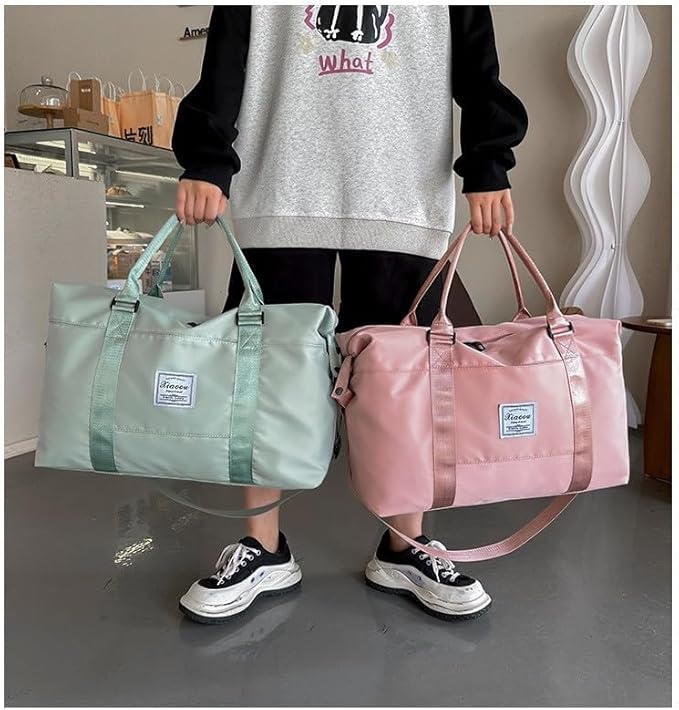 KARRESLY Travel Duffel Bag for Women,Shoulder Weekender Overnight Bag Sports Gym Tote Bag,Waterproof(Dark Pink) free size