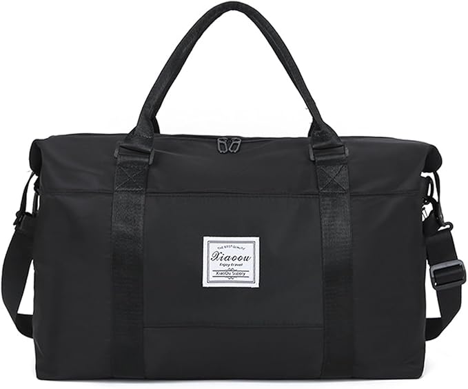 KARRESLY Travel Duffel Bag for Women,Shoulder Weekender Overnight Bag Sports Gym Tote Bag,Waterproof(Black) free size