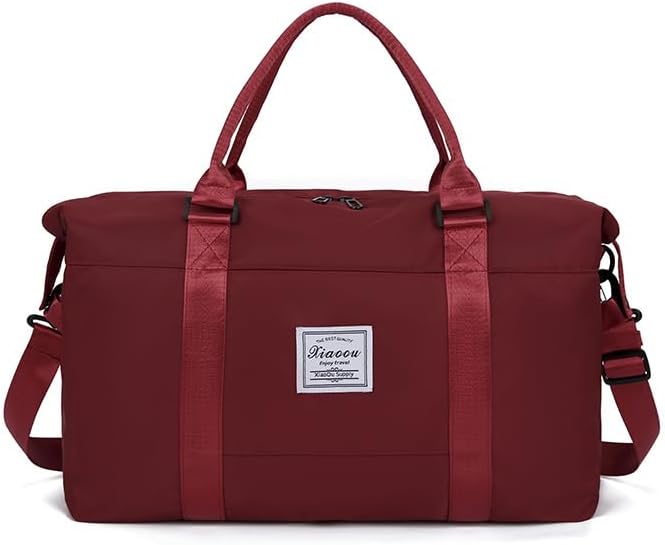 KARRESLY Travel Duffel Bag for Women,Shoulder Weekender Overnight Bag Sports Gym Tote Bag,Waterproof(Wine Red) free size