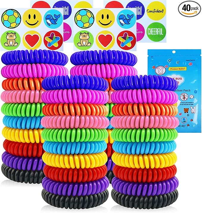 40 Pack Mosquito Repellent Bracelets, Individually Wrapped DEET-Free Insect & Bug Repellent Wrist Bands for Kids & Adults Outdoor Camping Fishing Traveling