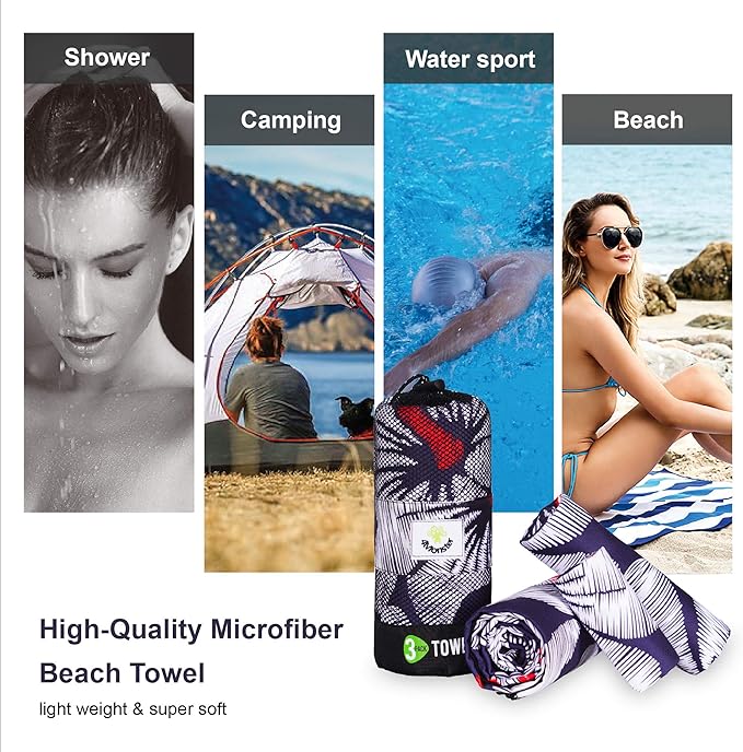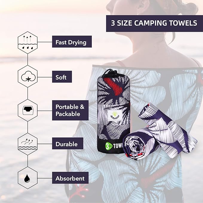 4Monster Camping Towels 3 Size at 1 Pack,Quick Dry Microfiber Towel,Beach Travel Towel Ultra Compact,Soft Gym Towel for Hiking Yoga Travel Sports Backpacking Trip and Pool