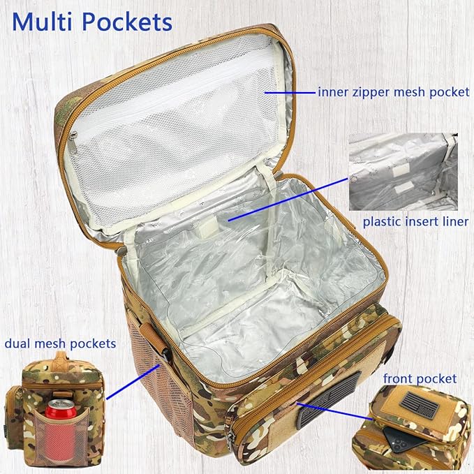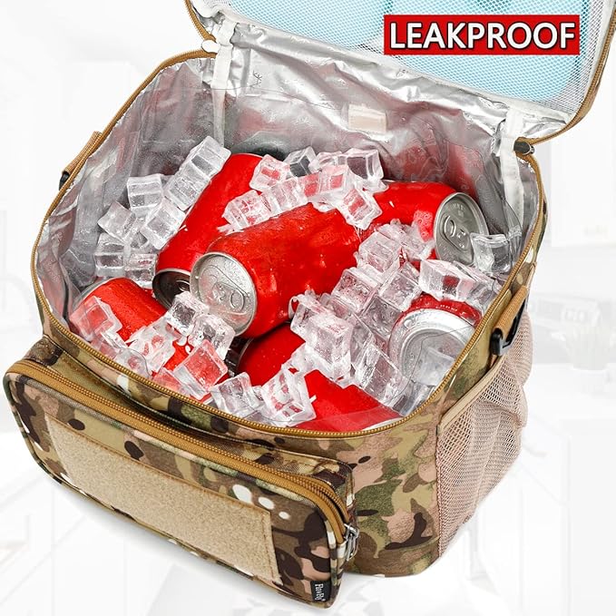 FlowFly Lunch Bag, Insulated Cooler, Thermal Lunch Box Tote with MOLLE/PALS Webbing, Adjustable Padded Shoulder Strap, for Tactical Men Women Adults and Boys Girls Kids (Multicam, Medium)