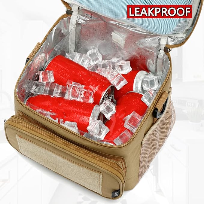 FlowFly Tactical Lunch Bag Large Insulated Lunch Box Cooler Tote for Men, Women with MOLLE/PALS Webbing(Brown, Medium)