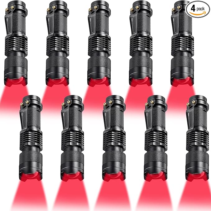Honoson 4 Pieces Red Flashlight LED Single Mode Light One Mode LED Torch Scalable Red Light Flashlight for Astronomy Aviation Night Observation