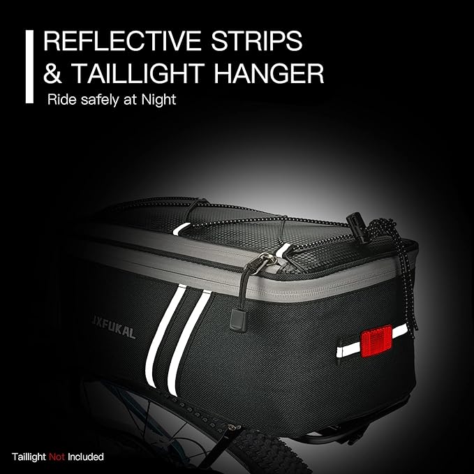 JXFUKAL Rear Bike Rack Bag with Rain Cover, 7L/9L/10L/12L Waterproof Bicycle Ebike Saddle Bag Cycling Pannier Trunk Carrier with Reflector & Adjustable Cord for Commuter Travel Outdoor