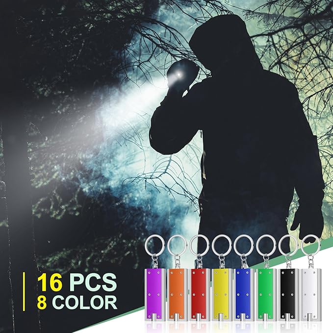 16 Pieces Mini Keychain LED Lights Keychains Flashlight Assorted Color Ultra Bright Flashlight Portable Key Chain Flash Light Torch Key Ring Powerful Keychain Lights for Outdoor Camping Activity