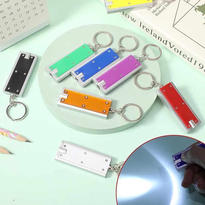 - Humanized design: this assorted color mini keychains flashlight is compact and has a lot of energy; When you press a specially set, the top will emit a strong white light; The flat cuboid design is very suitable for hand holding, and the 1-inch large split ring can easily connect more keys