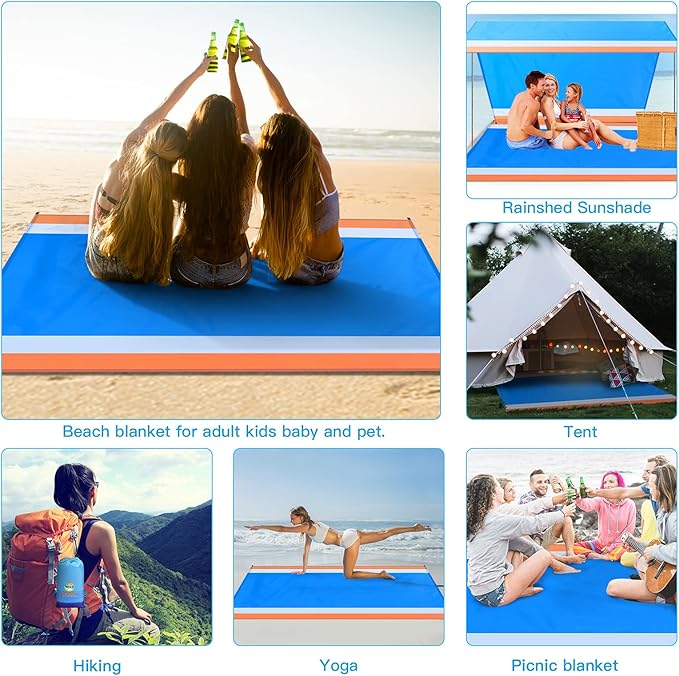 - 🏕️Beach Blanket Oversized:Good wear resistance,Dry-Quick,Can also be used as a rain shed,sunshade,tent,toddler crawl,Emergency mat,Feel comfortable lying down,Won't irritate your skin,Better professional fabric sewing.