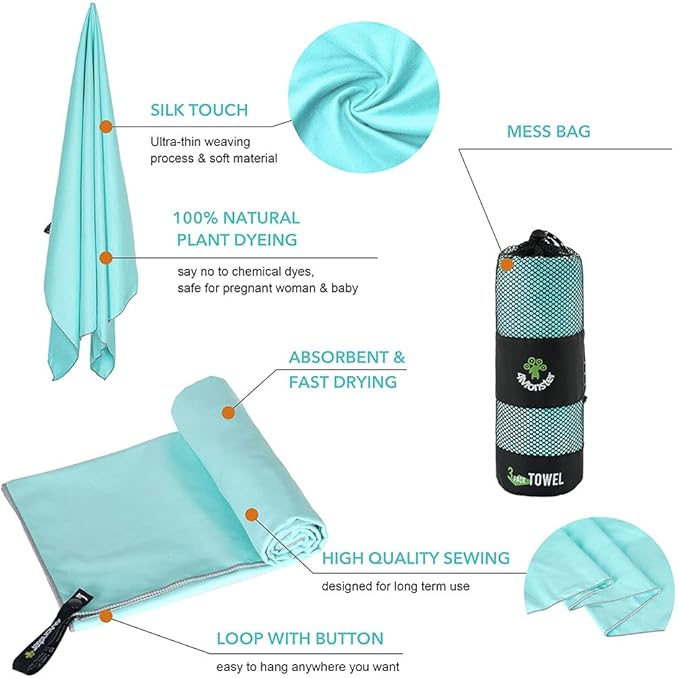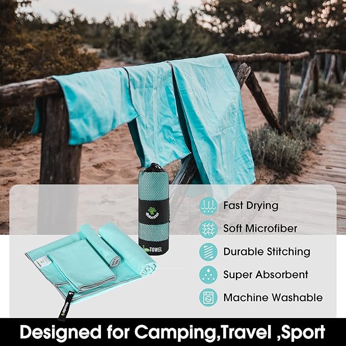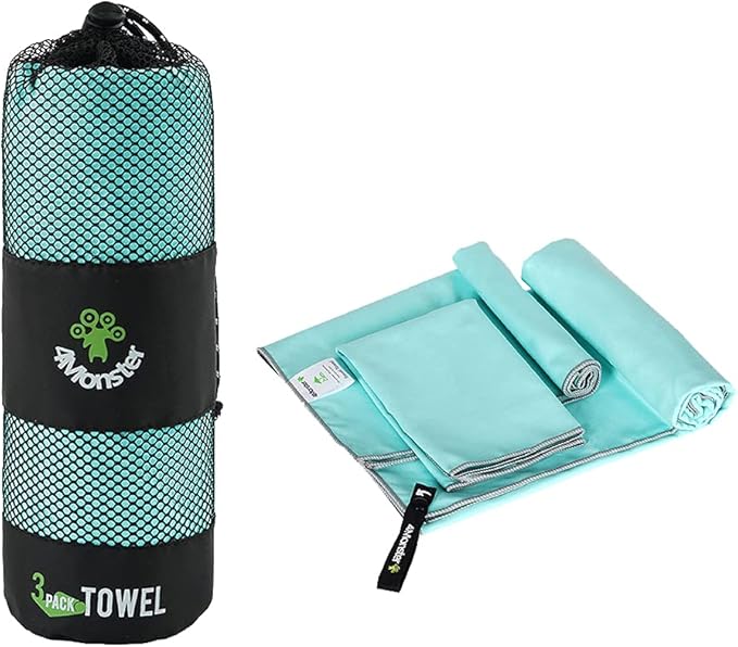 4Monster Camping Towels 3 Size at 1 Pack,Quick Dry Microfiber Towel,Beach Travel Towel Ultra Compact,Soft Gym Towel for Hiking Yoga Travel Sports Backpacking Trip and Pool