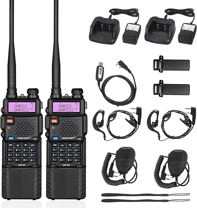 TIDRADIO GM-5R GMRS Radio, Two Way Radio GMRS Repeater Capable, with 3800mAh Battery, Dual Band Scanning Receiver and NOAA Weather & Alarm GMRS Handheld Radio for Survival Gear Hiking Hunting (2 Pack)