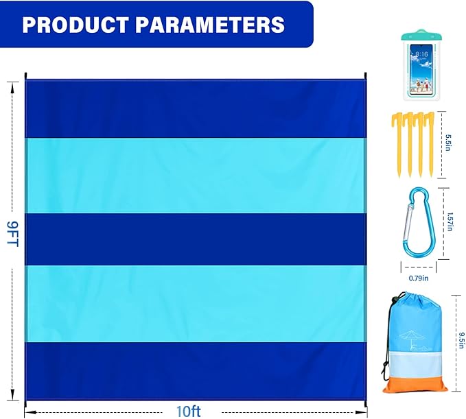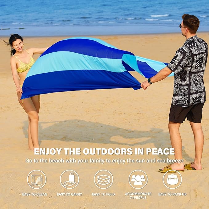 - Oversized Extra Large Beach Blanket :10'X 9'Size,2-8 Adults in total,Made by parachute fabric,More than 30% larger than other blankets,22.5 oz easy to carry!