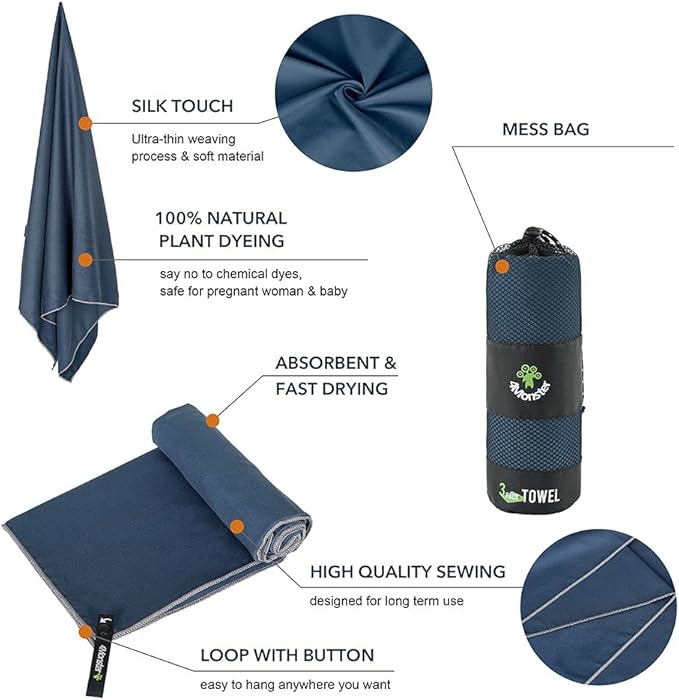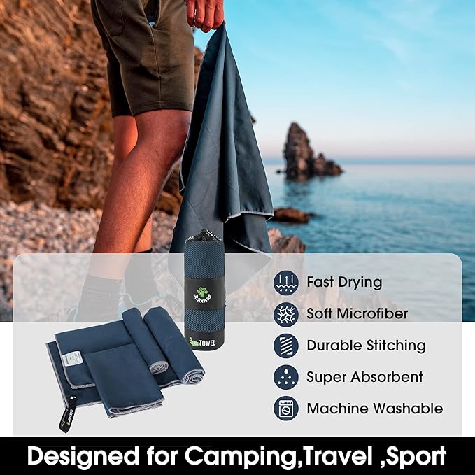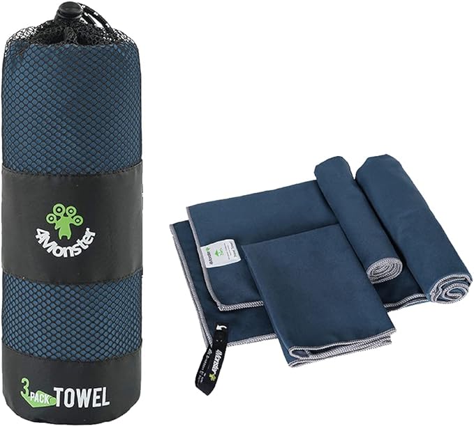 4Monster Camping Towels 3 Size at 1 Pack,Quick Dry Microfiber Towel,Beach Travel Towel Ultra Compact,Soft Gym Towel for Hiking Yoga Travel Sports Backpacking Trip and Pool