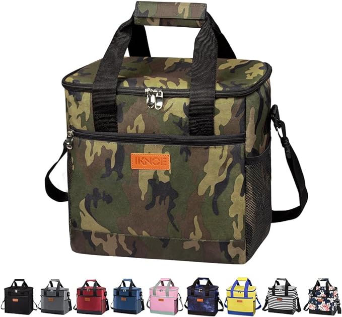 iknoe Large Cooler Bag Collapsible, 15L Insulated Bags, Leakproof Lunch Cooler Tote with Multi-Pockets for Adult, Insulated Lunch Box for Beach, Picnic,Work, Camo 24-Can