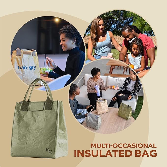 VonNova Insulated Lunch Box for Women, 7L Capacity, Leakproof Lunch Tote Bag, Durable Lunchbox made from Tyvek Material, Adult Cooler Bag for Work, Picnic, Travel and more (Olive Green)