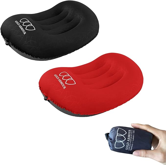Gold Armour Inflatable Camping Pillow Backpacking Pillow Lightweight Travel Air Pillow Ultralight Ergonomic Pillow Portable for Airplanes with Neck & Lumbar Support (2 Pack) (Black & Red)