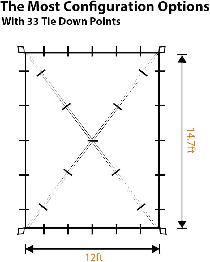 - ✔ BEST VALUE IN ONE COMPLETE PACKAGE - 2 CENTERLINES, 33 TIE DOWN POINTS, 5,000MM WATERPROOF RATING. INCLUDES STAKES, ROPES AND TENSIONERS! Choose the size that works best for you: 14ft x 12ft OR 12ft x 10ft OR 10ft x 10ft OR 10ft x 8ft