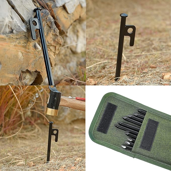 - [FEATURES]: Made of solid steel, extra strong pegs suitable for all surfaces, including sandy, icy, rocky and grass. Easy to pull out.