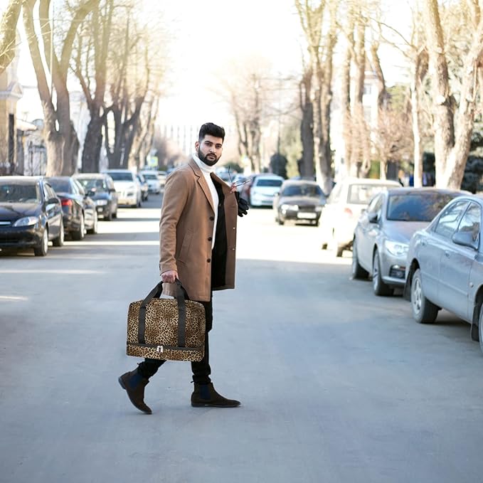 TropicalLife Leopard Print Waterproof Duffel Bag, Sports Tote Gym Bag, Animal Print Weekender Overnight Bag with Shoes Compartment for Men Women