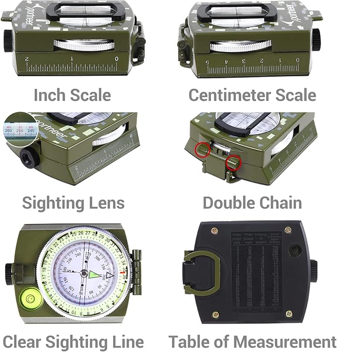- Military Construction: Sportneer compass hiking survival is tough and tenacious, the military grade construction with waterproof and shakeproof properties is built to survive the harshest of hike when you're using the map.