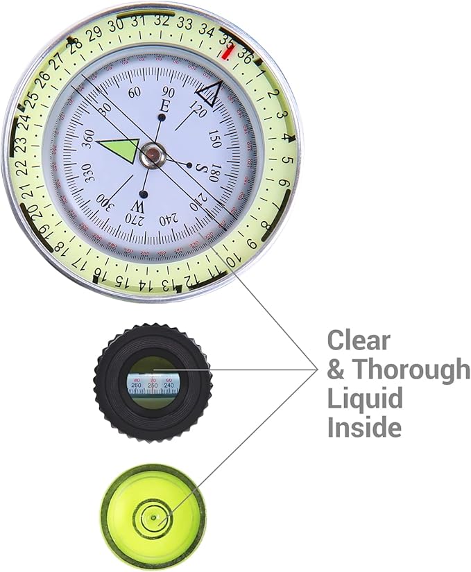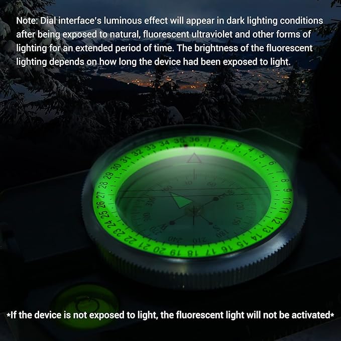 - Fluorescent: The navigation compasses' interface glow in the dark, so even when night falls are easy to get a clear and fast reading, ideal for camping, hiking, survival, hunting, mountain climbing, adventure and using map for orienteering in the dark. It's also suitable as the gifts for kids.