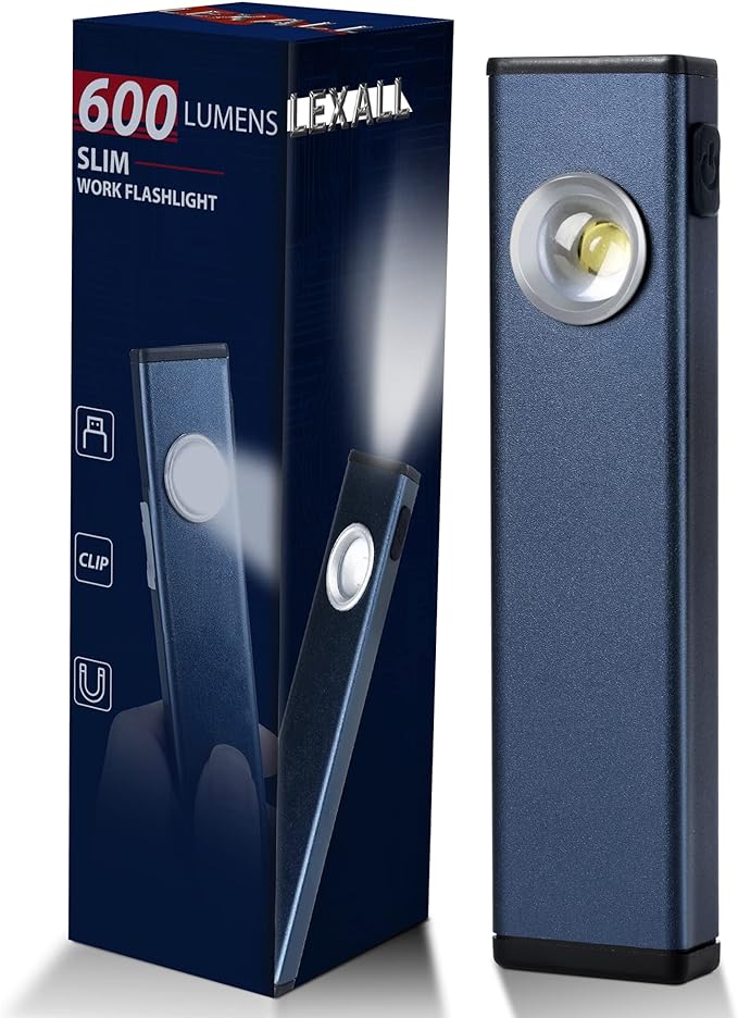 lexall Rechargeable Work Light, 600 Lumens Portable LED Flashlight, Magnetic COB Flat Task Light with Pocket Clip, 3 Modes, Pocket Pen Inspection Light for Repairing, Camping, Hiking, Emergency(1 Pc)