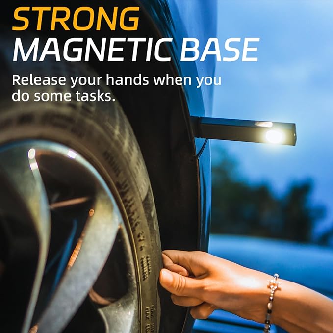 - 【Strong Magnet and Pocket Clip】The strong magnet base and clip of the work pen light allows you no longer occupy two hands during the work. This pocket job site lighting with magnetic base can be attached on objects that can be absorbed such as car hood, which makes it more adaptable to many bad working conditions and bring you much convenience.