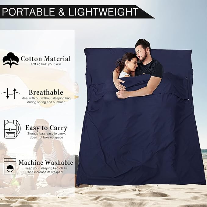 Sleeping Bag Liner and Camping Sheet, Camping & Travel Sheets for Adults, Lightweight Double Sleep Sack for Outdoor Travel Hiking Hotels Picnics