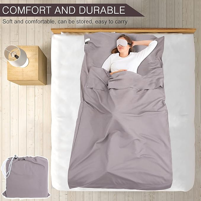 - [KEEPS YOU AND YOUR CAMPING BEDDING CLEAN] Increase the longevity of your sleeping bag by protecting it from bacteria, sweat and other potential contamination. Bring it on your camping/backpacking trip to have it ready for camp and hostels to discourage those nasty bed bug. Why not even bring it on your weekend trip as a clean layer between hotel sheets for extra protection?