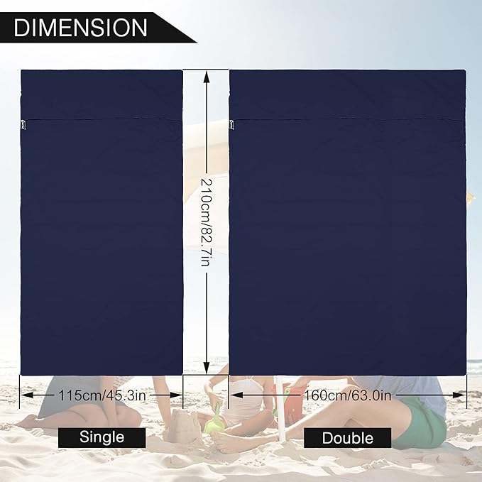 - [2 Size Options] Single- Fits 1 People: 45 x 82.7inch, Double- Fits 2 People: 70.9 x 82.7inch. It has ample room for tall people without having excess material that makes you uncomfortable. The opening length is 100cm/39’’ for you to get in.