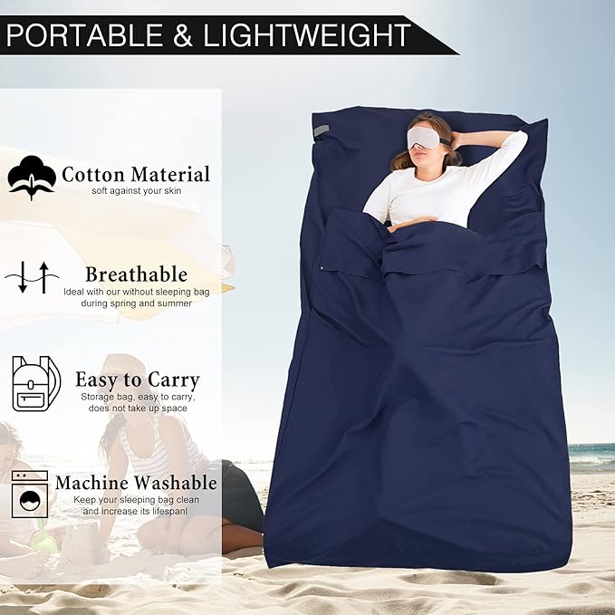 - [KEEPS YOU AND YOUR CAMPING BEDDING CLEAN] Increase the longevity of your sleeping bag by protecting it from bacteria, sweat and other potential contamination. Bring it on your camping/backpacking trip to have it ready for camp and hostels to discourage those nasty bed bug. Why not even bring it on your weekend trip as a clean layer between hotel sheets for extra protection?