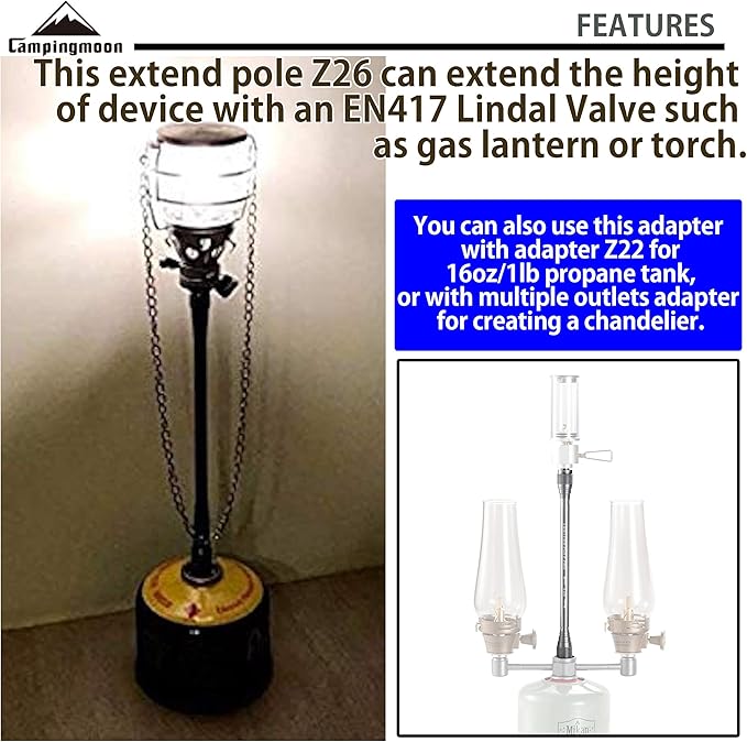 - This extend pole Z26 can extend the height of device with an EN417 Lindal Valve such as gas lantern or torch.