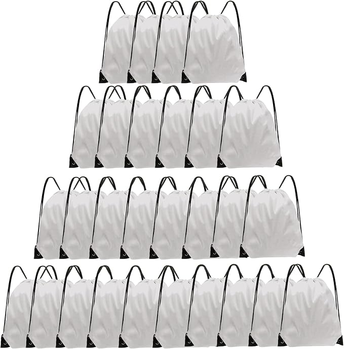 Drawstring Backpack Bulk 28 PCS Drawstring Bags String Backpack Cinch Bag Sackpack for Men Women Gym (White)