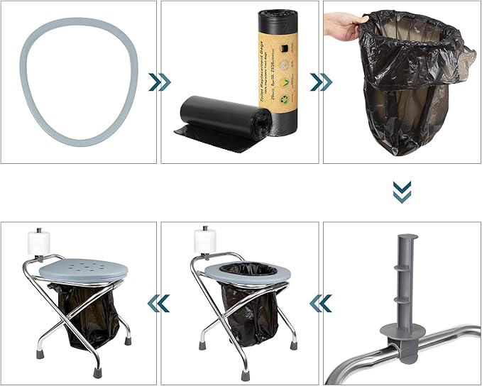 - EASY CLEANUP & NO MESS: Place the plastic ring on the seat, toilet bags will be held in place by a removable plastic ring. BLIKA portable toilet seats are perfect to be accompanied with 8-gallon size toilet replacement bags. After using, rinse the seat with water or wipe with paper as needed to keep clean.