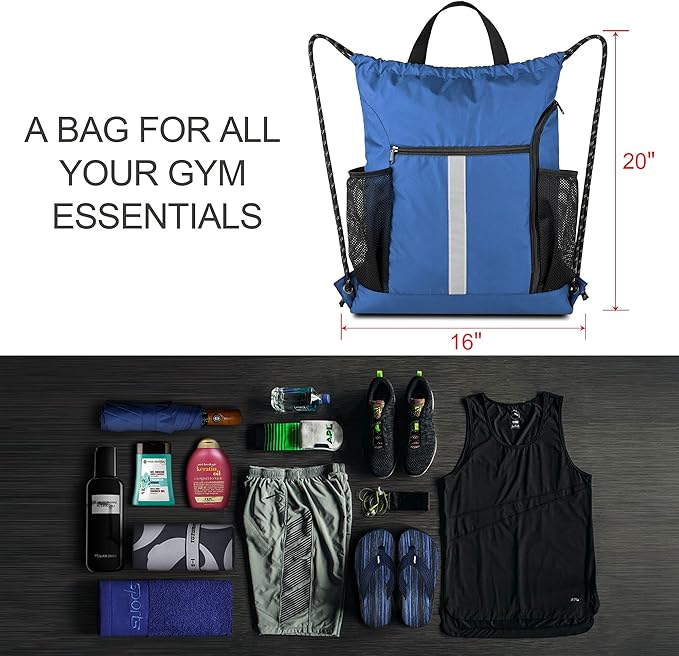 • Large Space: The main space of cinch backpack bag measures 16" x 19.5" which is big enough to hold a basketball, gym clothing, swim gear, sport towel and daily supplies. Perfect for gym, sports, trip, travel, camping, hiking, walking, running and more! It's also a great sports gift for men and women. Men and women can use it as a gym sack bag or a cinch tote bag.
