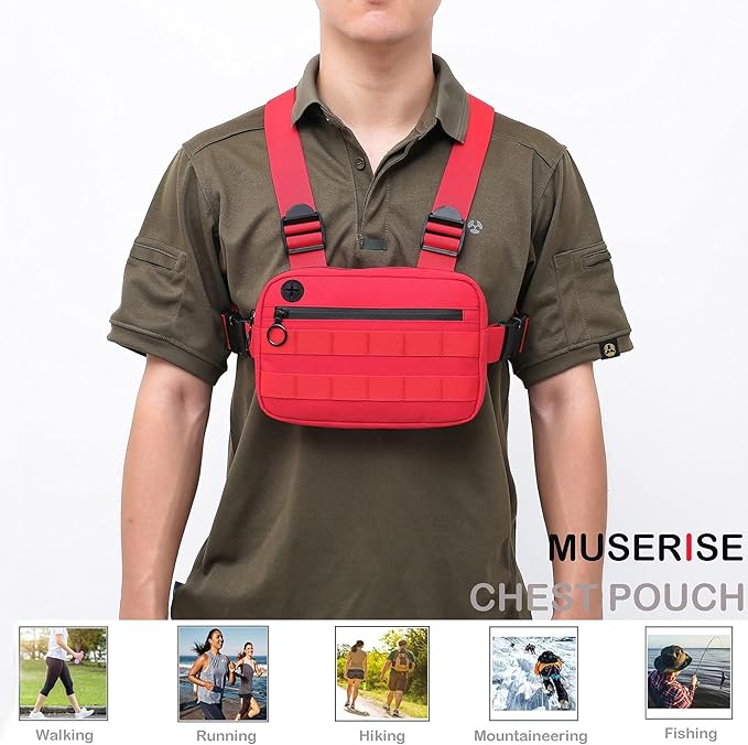Outdoor Sports Utility Chest Pack,Tactical EDC Chest Bag For Men, Lightweight Conceal Chest Pouch Holster, Chest Rig Vest With Built-In Phone Holder For Workouts, Cycling & Hiking (Red)