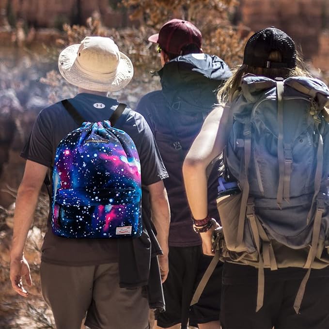 - COMFY ADJUSTABLE WIDE SHOULDER STRAPS - Wide, adjustable and sturdy shoulder straps make this gym string backpack more comfortable and durable. The shoulder straps can be easily adjusted, making you no worry about hanging low or high on your back. You will not feel uncomfortable even if you wear it for a long time.